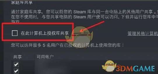 3、如果想要关闭所有家庭共享的话,就直接取消“在此计算机上授权库共享”