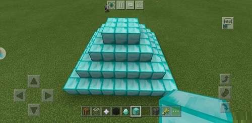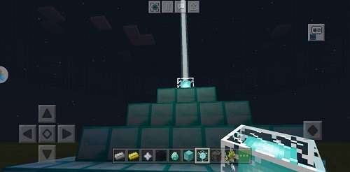 1、首先我们要用钻石块、金块、绿宝石块或铁块搭建一个如图所示的正方形平台。