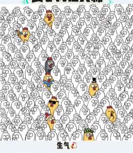3、左上角有一只鸡哔你,右边有一只生气鸡。