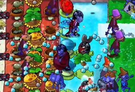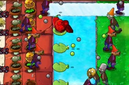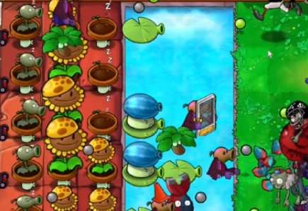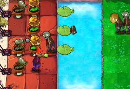 3、在泳池中种植一列豌豆睡莲,补齐左侧的阳光向日葵。