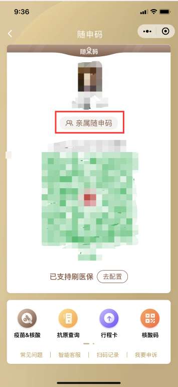 4、如果之前已经领过亲属随身码,只需要点击亲属名字旁白你的核酸码即可领取。申请一次有效期为30天,也可以将核酸码打印出来方便家属携带登记。