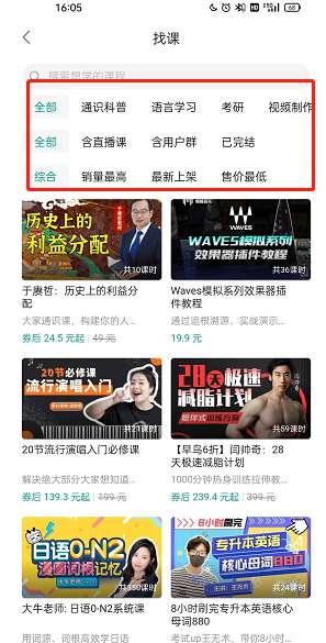 4、然后你就可以根据分类快速找到自己需要的课程了。