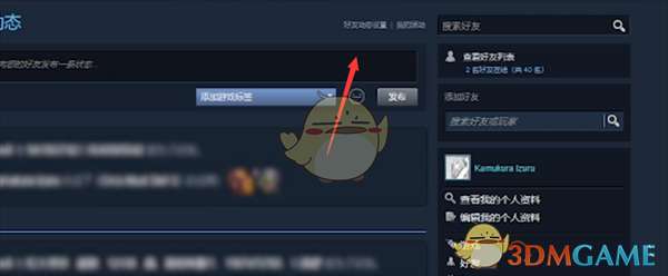 在steam主页面中点击左上方的个人昵称,在该页面中可以查看所有好友和自己的动态消息。steam会自动向好友发送自己的游玩动态,比如购买游戏、获得成就和添加愿望单等等行为都会被当做动态自动发送给好友。那么如果我们想要删除动态该怎么弄呢?下面小编就来为大家介绍一下。
