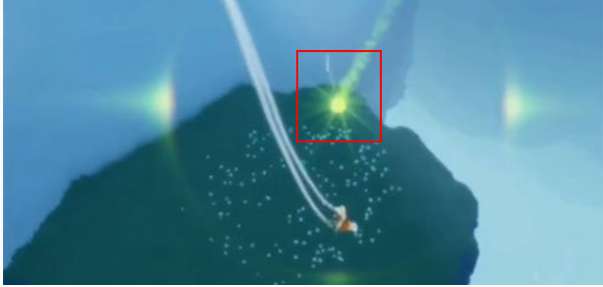 4、飞到小岛后可以看见有绿色的光环降落到小岛,那就是地之灵。
