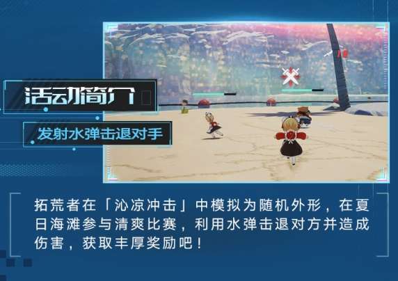 拓荒者可以在「沁凉冲击」玩法中模拟为随机外形,在夏日海滩参与清爽比赛。利用水弹击退对手,赢得比赛的胜利吧!