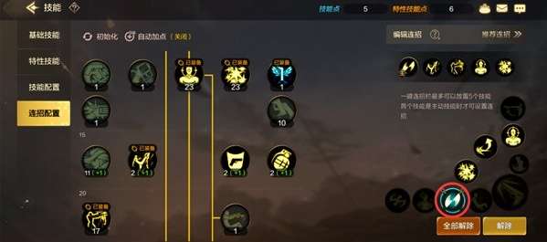 2、点击后会出现当前已经放置的连招技能,如下图的红框内: