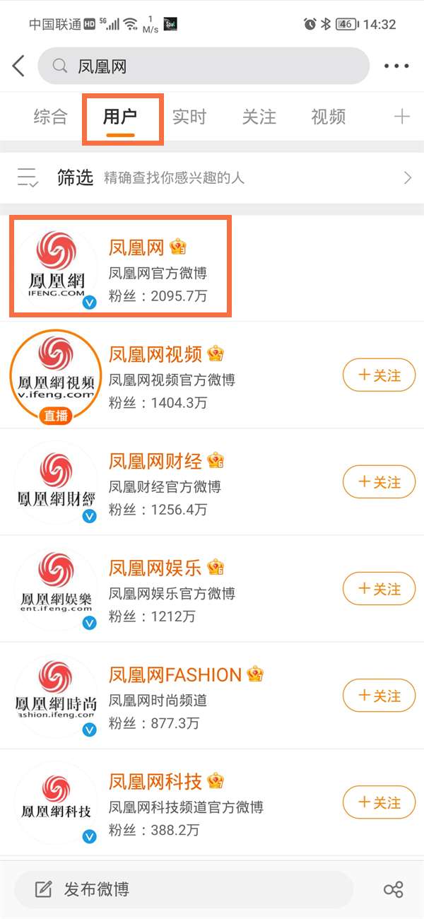 2、搜索需要查看的用户,点击进入主页。