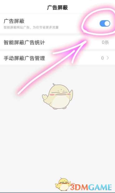 6、紧接着,在广告屏蔽设置页面中可以看到该功能目前还没开启;