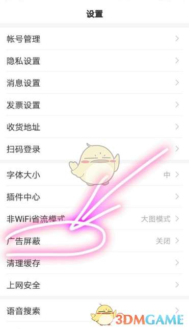 5、我们找到“广告屏蔽”设置项并点击选择;