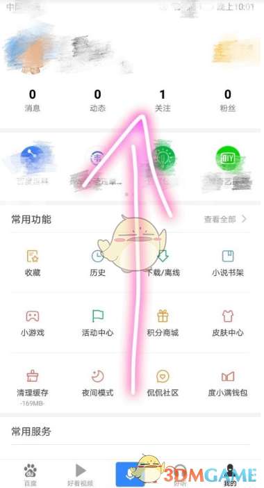 1、打开百度浏览器,首页选择“我的”选项;