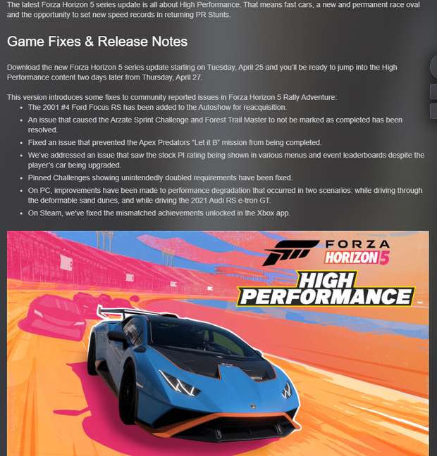 由Playground Games宣布,4月25日上线《极限竞速:地平线5》的最新更新补丁。游戏开发团队表示,该补丁将会解决PC版游戏中一些性能表现下降的问题。