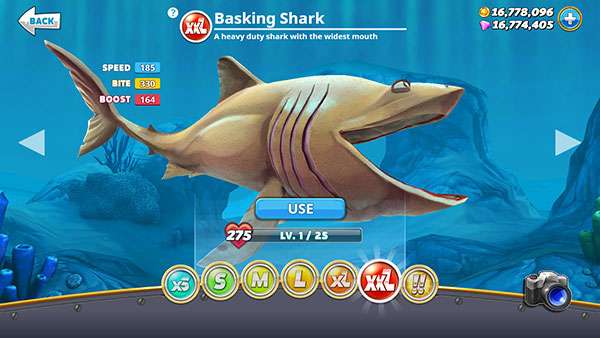 5、XL级鲨鱼:可以吃蓝水母,破坏绿柱子。有巨口鲨,虎鲨等。