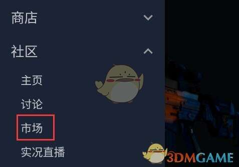 1、首先我们点开steam左侧边栏,在社区下方进入“市场”
