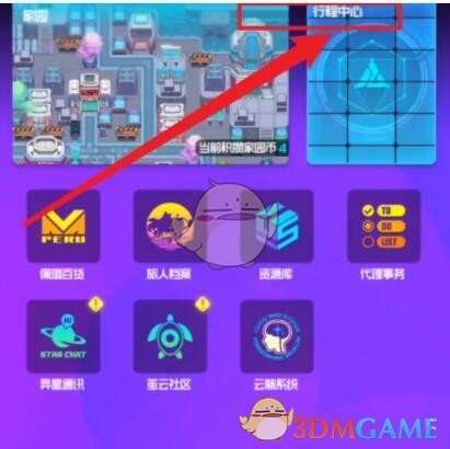 1、打开跃迁旅人,首先在主界面点击进入【行程中心】。