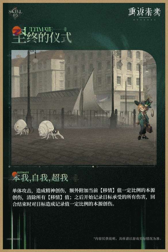 单体攻击,造成精神创伤,额外附加当前【移情】值一定比例的本源创伤,清除所有【移情】值;