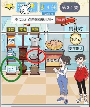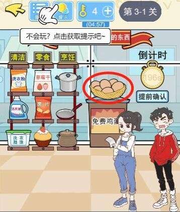 点击货架上面的鸡蛋,拿走三个免费鸡蛋