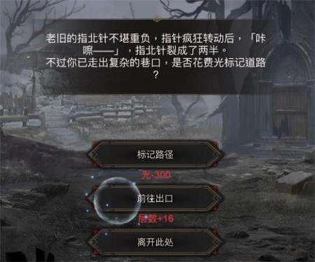2.1-7层,7层的时候全身刚好4金币,我们购买指北针,第10层的时候遇到路口不要使用,选择离开此处。因为如图10层使用指北针的奖励对第一次进入秘境的玩家并不具有吸引力,层数+18层反而会影响我们赚取更多的金币。