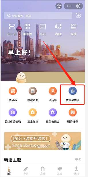2、在小程序首页用户们就可以看到核酸采样点服务,点击进入。