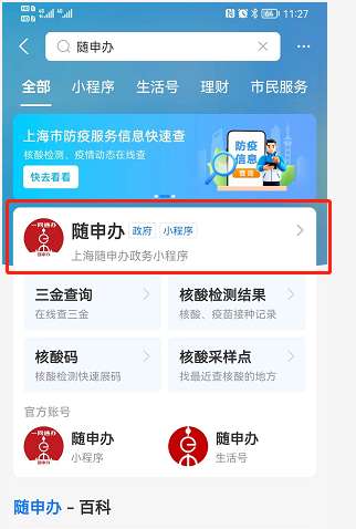 1、在支付宝或者微信中搜索“随申办”进入小程序。