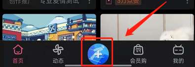 1、打开哔哩哔哩,找到最下方中间的加号,点击。