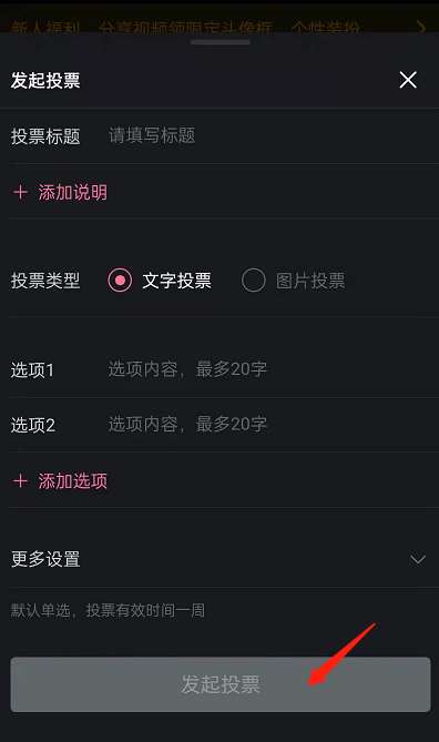 4、填写好投票后,点击发起投票即可。