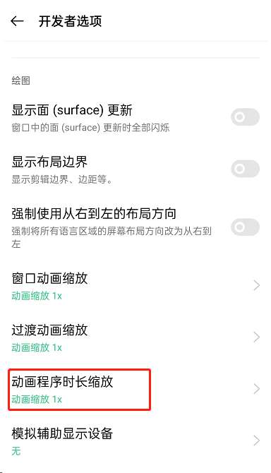 3、滑动下去,找到动画程序时长缩放。