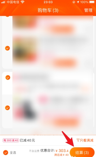 1、打开手机淘宝软件,将想买的东西放入购物车。