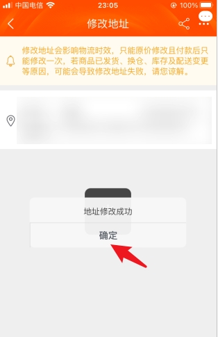 9、点击“确定”,修改完毕卖家会按照新地址发货。