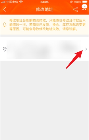 7、打开看到当前送货地址,点击地址后面的箭头。
