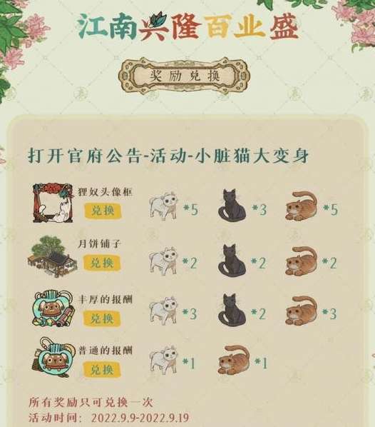 江南百景图小脏猫大变身活动怎么玩?小脏猫大变身是江南百景图近期的一个活动,可以兑换头像框和月饼铺子等奖励,有小伙伴想知道江南百景图小脏猫大变身活动怎么玩,下面为大家带来江南百景图小脏猫大变身活动攻略,希望对大家有所帮助!