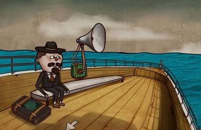 我们点击码头就可以靠近查看这艘船了。然后点击船上的甲板,有一个忧郁男人正坐在甲板之上,他说一辈子都在找会飞的鱼,那么我们就需要来帮他找。在前面我们已经知道了喇叭可以吸引飞鱼飞过来,那么我们就来点击一下这个喇叭,看看它到底是怎么吸引的。