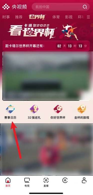 第一步:首先打开央视频app,在央视频首页界面里,点击进入世界杯。
