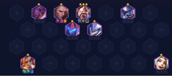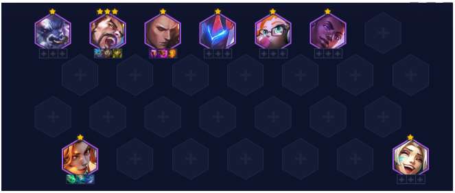 升8人口后开始大搜卡找到蕾欧娜,阵容也开始转型,开3秘术与3淘气羁绊来增强阵容坦度与控制能力。如果能上9添加努努开2吉祥物羁绊,可大幅度增加阵容续航能力,9人口也可考虑增加厄加特或费德提克来增加阵容控制(但3淘气控制能力已经比较高了)。