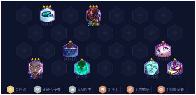 3-2升6人口,大搜卡找到乐芙兰与娑娜,开4爱心+2AI+2斗士羁绊,之后卡着30金币追李青三星,顺带可追蔚与娑娜三星,有爱心转就追乐芙兰三星。蔚没有三星或没索拉卡之前不建议下布里茨,特别是2Ai是开局增加全员护盾的时候。