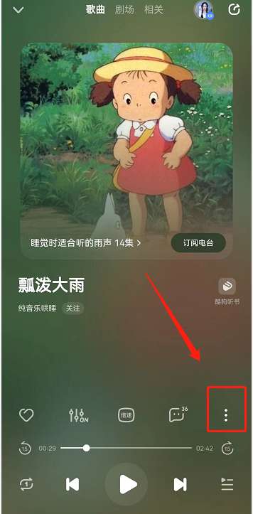 2、打开酷狗音乐歌曲播放页,点击下方三点图标。