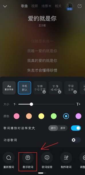 4、在这就能看到悬浮歌词功能,点击即可开启。