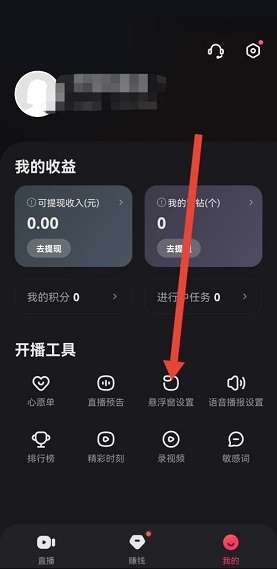 3、来到我的主页,点击【悬浮窗设置】,如下图所示。