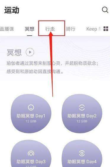 第二步:进入keep运动界面,点击右侧的行走(如图所示)。