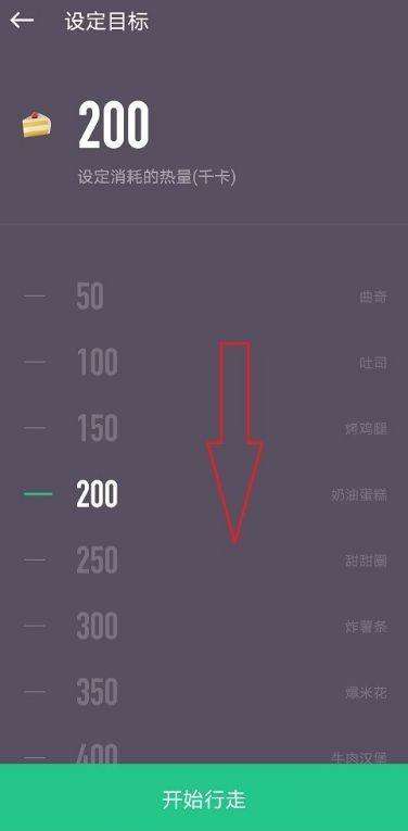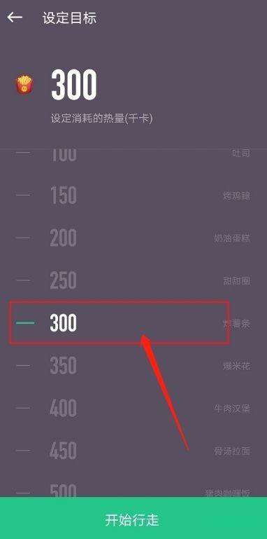 第五步:最后设置行走目标为消耗300千卡热量,根据需要进行设置(如图所示)。