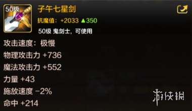 武器 【子午七星剑】 效果: 攻击生命值50%以上的敌人时,有5%的概率使敌人减少700点物理防御力,效果持续5秒。(冷却时间5秒) 攻击生命值低于50%的敌人时,有5%的概率使敌人减少1000点防御力,效果持续5秒。(冷却时间5秒) 攻击时,有5%的概率施放激者之怒,效果持续10秒。(冷却时间10秒) 物理和魔法攻击力 +30% 自身物理防御力 -30%