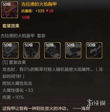 三、 装备选择 1、狂战士纯输出职业,推荐古拉德的火焰套装+骨戒+散件+子午/狂龙; 2、这样还能省下攻击卡,武器还能多加个宝珠,两把巨剑武器都为毕业装。 装备:【古拉德的火焰套装】