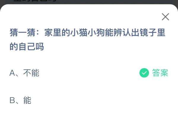 2022支付宝蚂蚁庄园6月25日的题目为:家里的小猫小狗能辨认出镜子里的自己吗?答案是什么呢?很多小伙伴可能还不太清楚。下面小编就为大家带来了正确答案分享,希望能帮助到你。