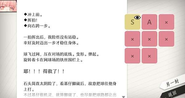 A级结局:一不小心崴了脚——冲上前——挥拍——向右跨一步。
