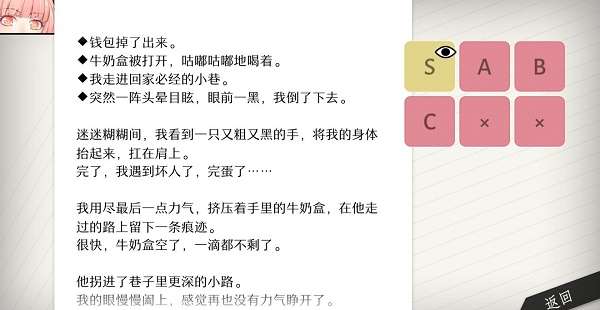 C级结局:钱包掉了出来——我走进回家必经的小巷——突然一阵头晕目眩——牛奶盒被打开。