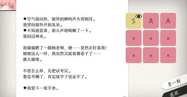 A级结局:空气很闷热——不知道是谁——桌上被放了一张字条。
