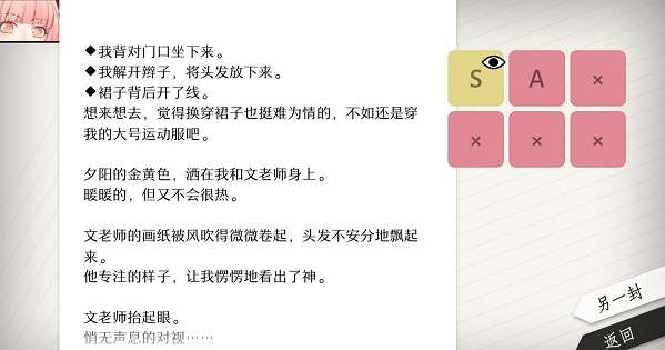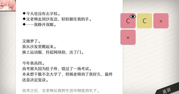 E级结局:文老师走到沙发边——我睁开双眼——今天也没有去学校。