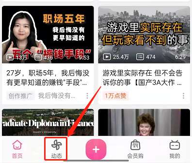 1、打开哔哩哔哩,点击动态。