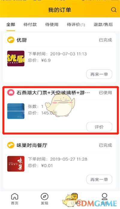 1、打开手机美团,点击订单,选择一个已经完成的订单