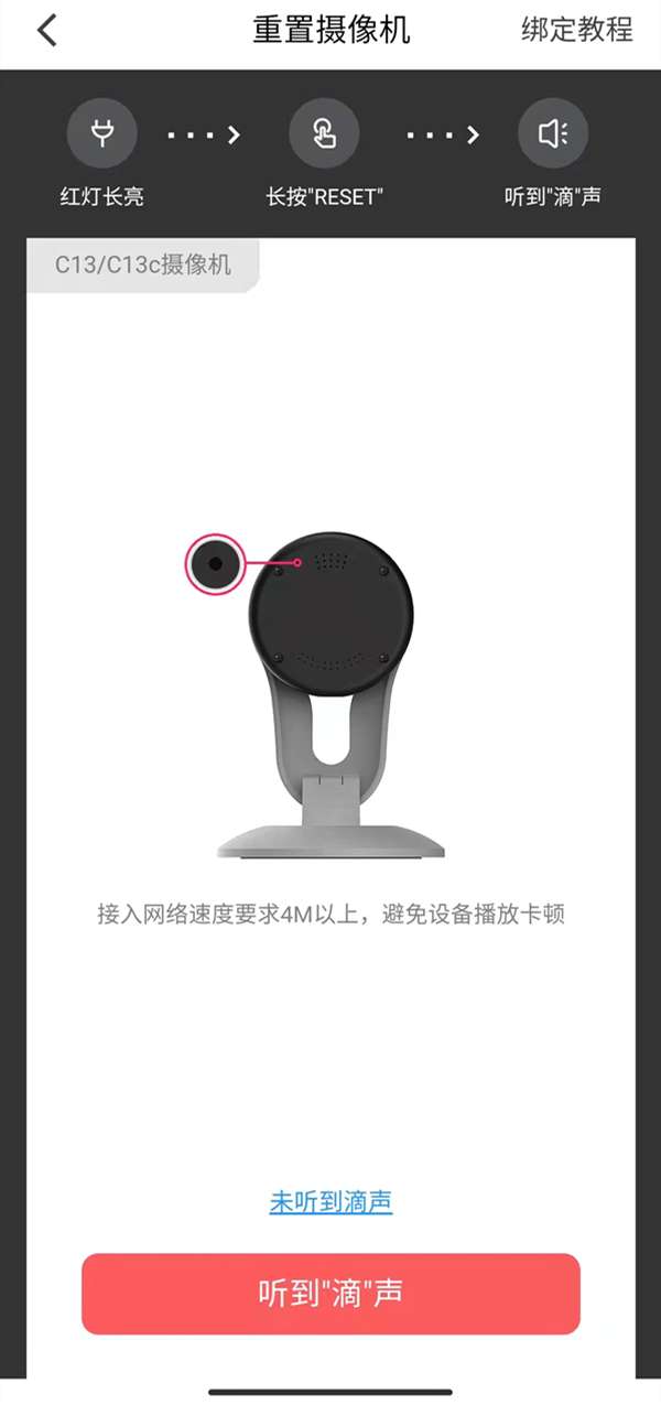 2、找到想要连接的设备,按照系统提示进行操作重置摄像头。
