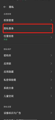 2、点击【隐私替身】。